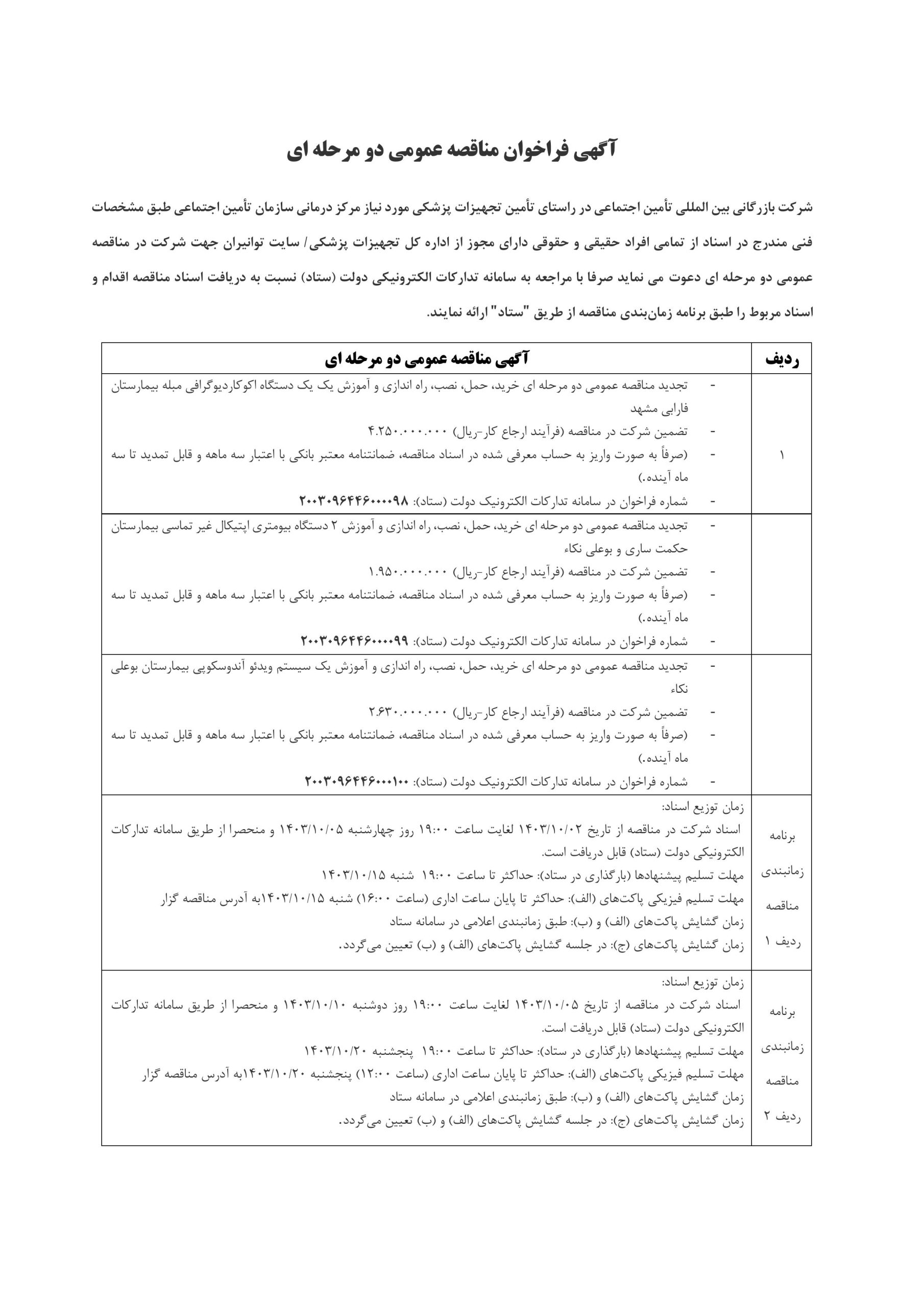 آگهی فراخوان مناقصه عمومی دو مرحله ای (4)